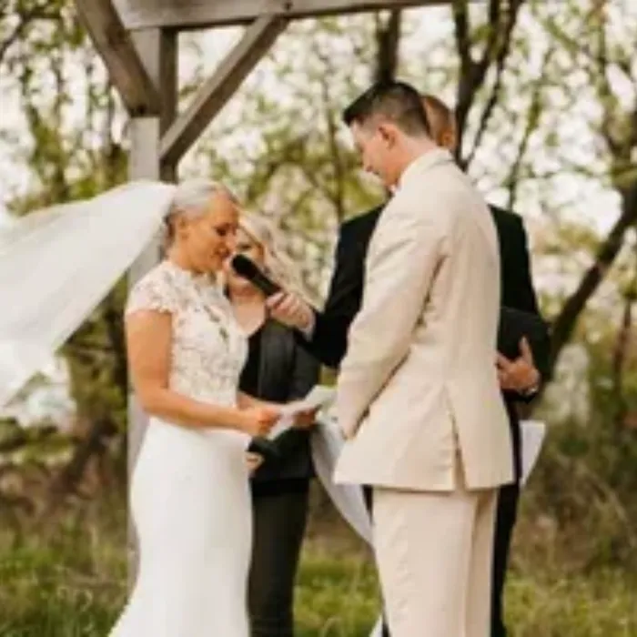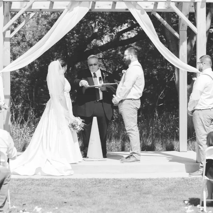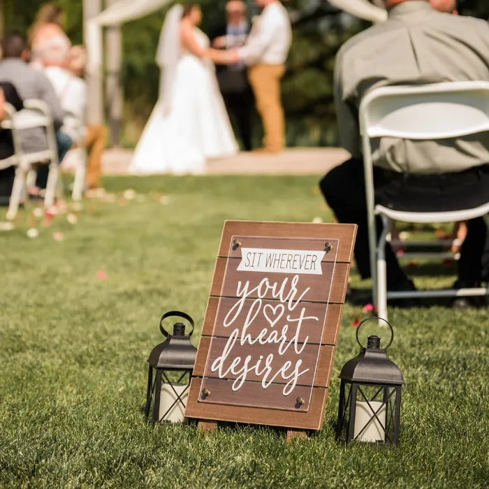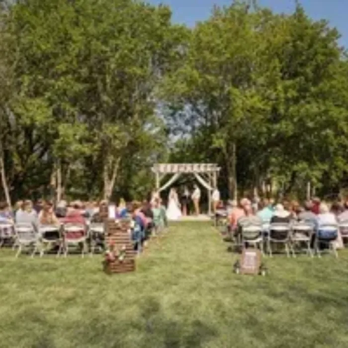A serene outdoor setting is revealed as guests make their way from the clubhouse, down the cart path and across the bridge that spans the river. Beautiful, mature ash and oak trees canopy the pergola where guests witness the exchanging of vows. With its beautiful colors and natural beauty, this outdoor venue is a truly a hidden treasure in Southwest Minnesota.