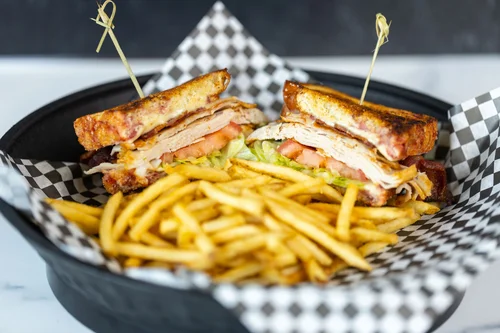 CLUB HOUSE MELT – Layered with turkey, Swiss cheese, bacon, lettuce and tomato, grilled to perfection on a raspberry fritter bread – $16.95
